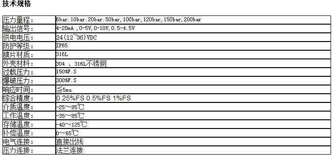 额定量程:6bar,10bar,20bar,50bar,100bar,120bar,150bar