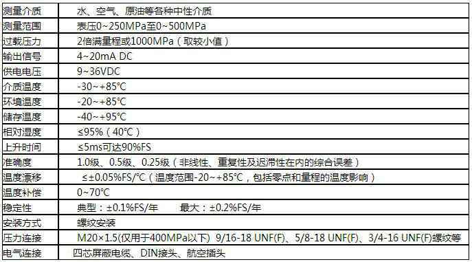 额定量程:表压0~250MPa~500MPa